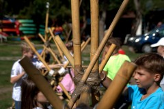 Podzieleni na zespoły, uczestnicy konstruują z gotowych elementów własne machiny oblężnicze.